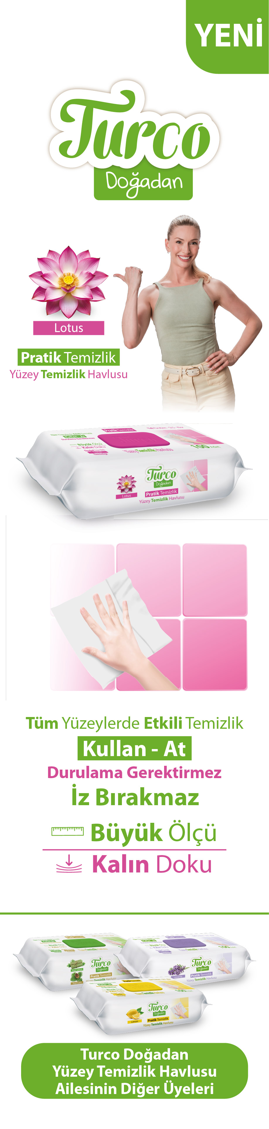 Turco Doğadan Pratik Yüzey Temizlik Havlusu Lotus 2x100 (200 Yaprak)